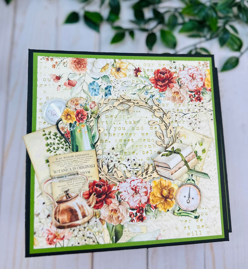 Kits included 12x12 design paper, flowers, ephemera, seam biding and other goodies.